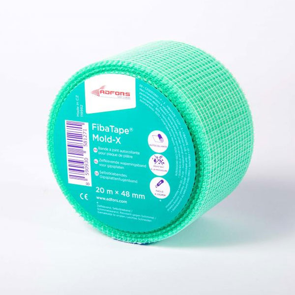 Bande à joint résistante aux moisissures, parfait pour les pièces humides. Compatibles avec les plaques de plâtre résistante aux moisissures.