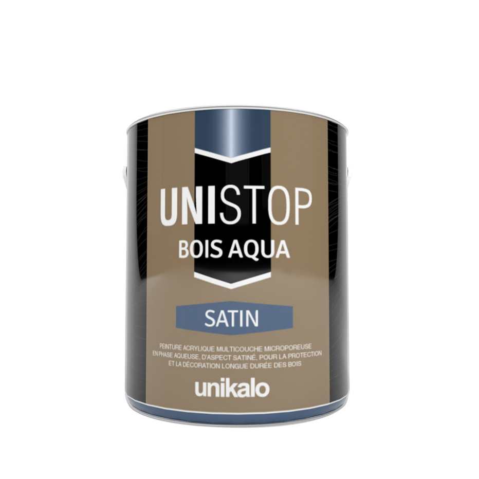 Peinture microporeuse multicouche d’aspect satiné à base de résine acrylique en phase aqueuse.