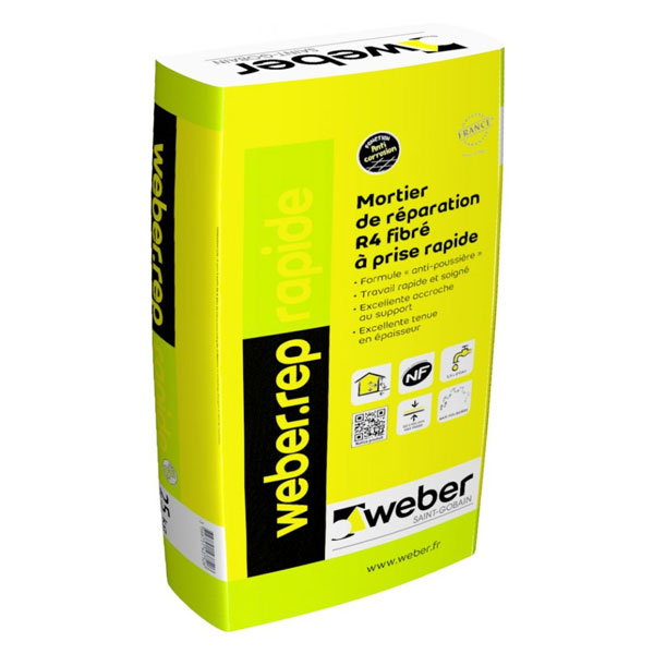 Mortier de réparation fibré à prise rapide. Utilisable pour toutes les réparations ponctuelles et permet un travail rapide et soigné. Excellente accroche au support.